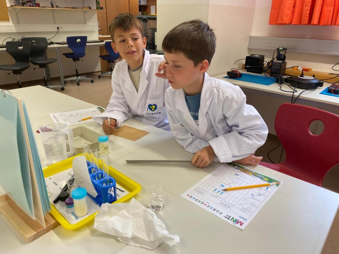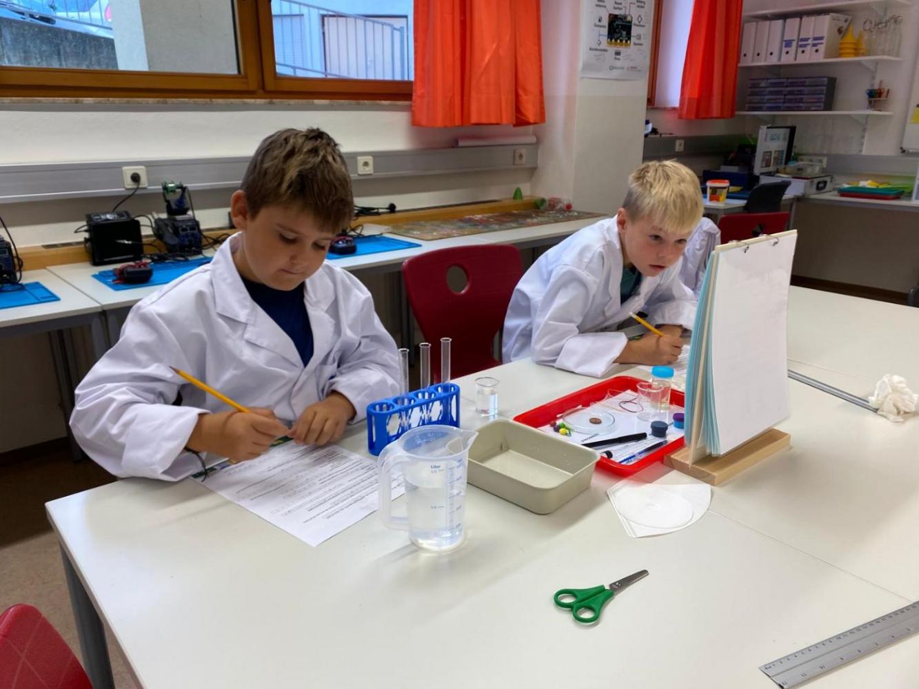 Die 4. Klasse verbrachte einen spannenden Vormittag im MINT-LAB Imst. Die Kinder durften dort zwei Workshops besuchen: Beim 3D-Drucker stellten sie eigene Schlüsselanhänger her, und bei den Wasserexperimenten hatten sie viel Spaß.