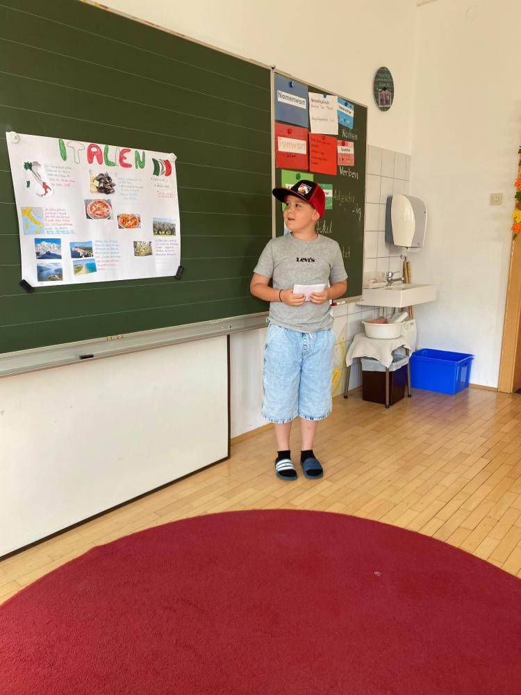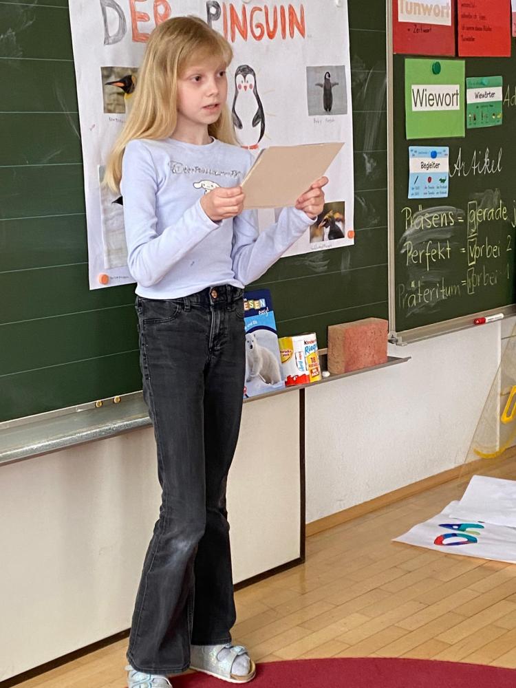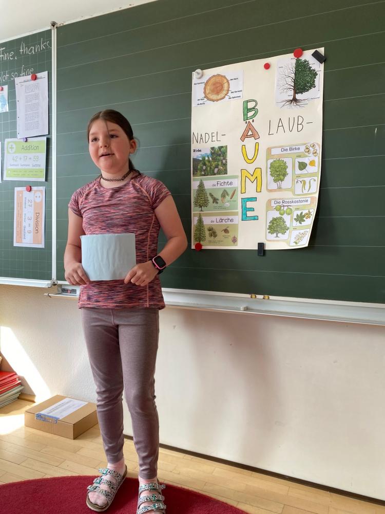 In der 3. Klasse hielten die Kinder ihre ersten Referate. Alle waren begeistert dabei und trugen ihre Themen mit viel Freude vor. Die Zuhörer hörten aufmerksam und interessiert zu - man merkte, wie wissbegierig sie waren. Einige Kinder hatten schöne Plakate gestaltet, andere nutzten PowerPoint-Präsentationen. Auch verschiedene Gegenstände zur Anschauung machten die Vorträge spannend. Es war toll zu sehen, wie kompetent die Schülerinnen und Schüler ihre Themen erklärten.