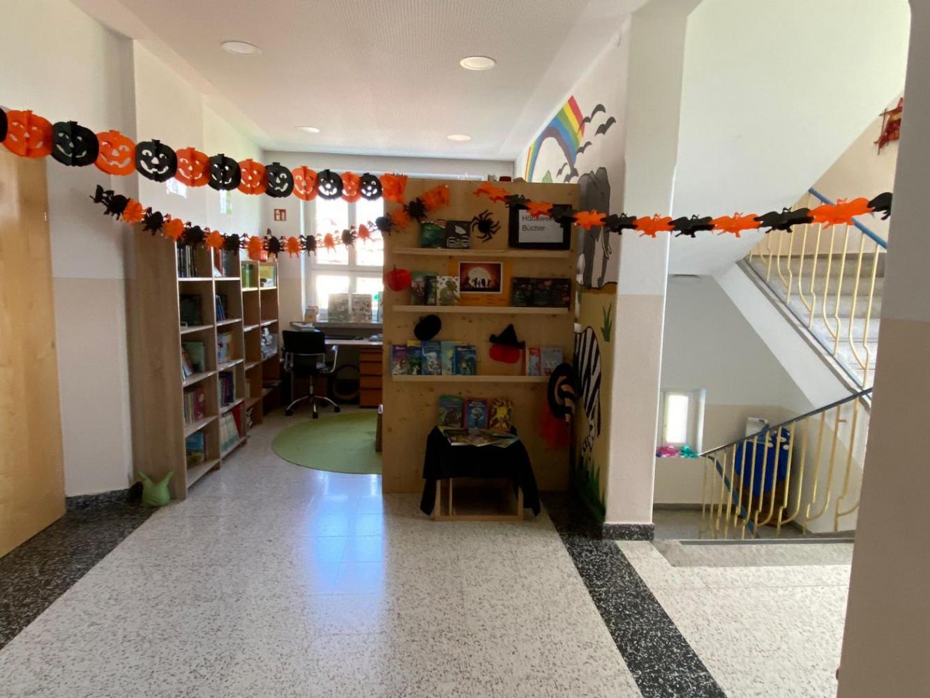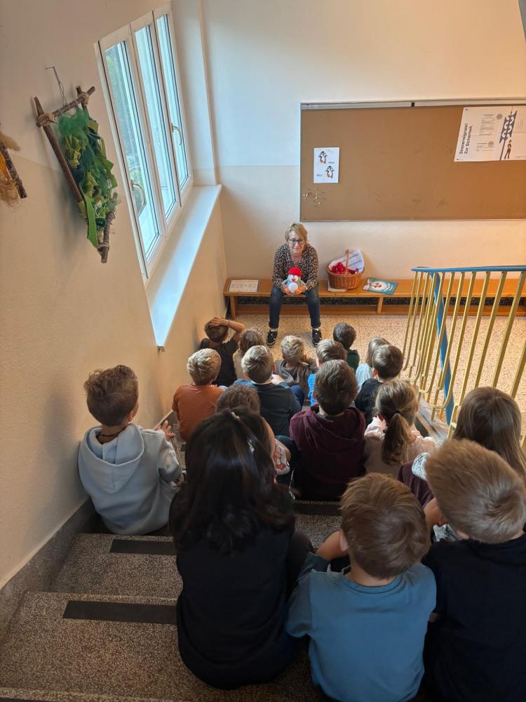 Evelyn, unsere Bibliothekarin, bemüht sich sehr darum, die einzelnen Klassen regelmäßig in die Schulbücherei einzuladen, um Leseproben vorzutragen und neugierig auf neue Geschichten zu machen. Neben dem Lesen wird auch gemeinsam gebastelt, gelacht und kreativ gearbeitet.