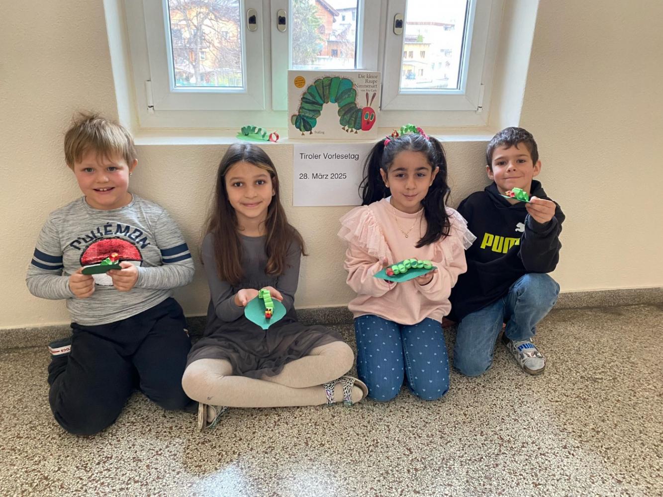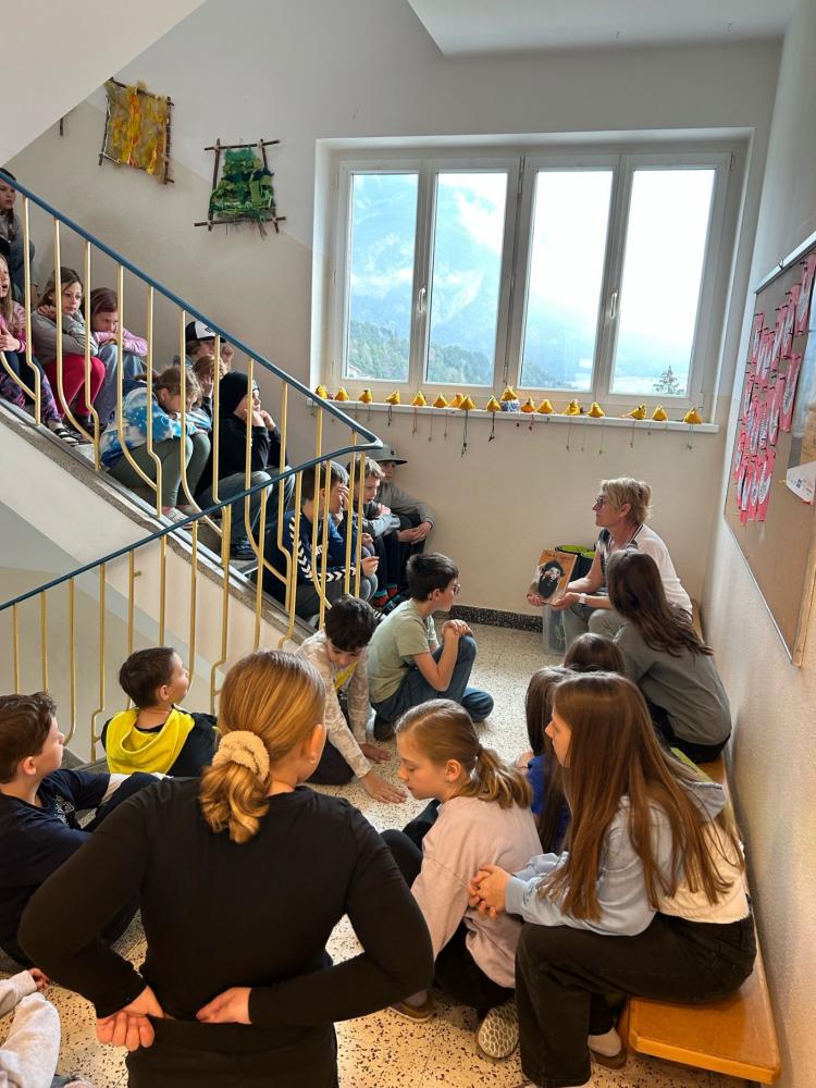 Die Schüler und Schülerinnern unserer Schule durften gespannt den Geschichten zuhören, welche von Frau Lehrerin Evelyn vorgetragen wurden. Bücher wie "Die kleine Raupe Nimmersatt" (1. und 2. Klassen) und "Das allerschönste Ei der Welt" (3. Klasse) sowie eine Arzler Sage von der "Hexe Fanga" (4. Klassen) weckten das Interesse der Kinder. Zum Abschluss wurde noch fleißig gebastelt oder sogar ein eigenes Büchlein hergestellt.