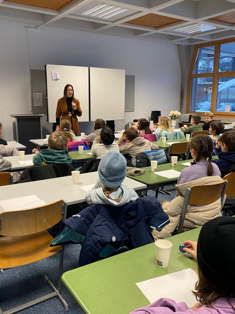 Zum ersten Mal durften die Kinder der 4. Klasse einen spannenden Tag im Bundesrealgymnasium Imst erleben. Begrüßt wurden sie herzlich von der Schulleiterin Prof. Mag. Daniela Leitner.