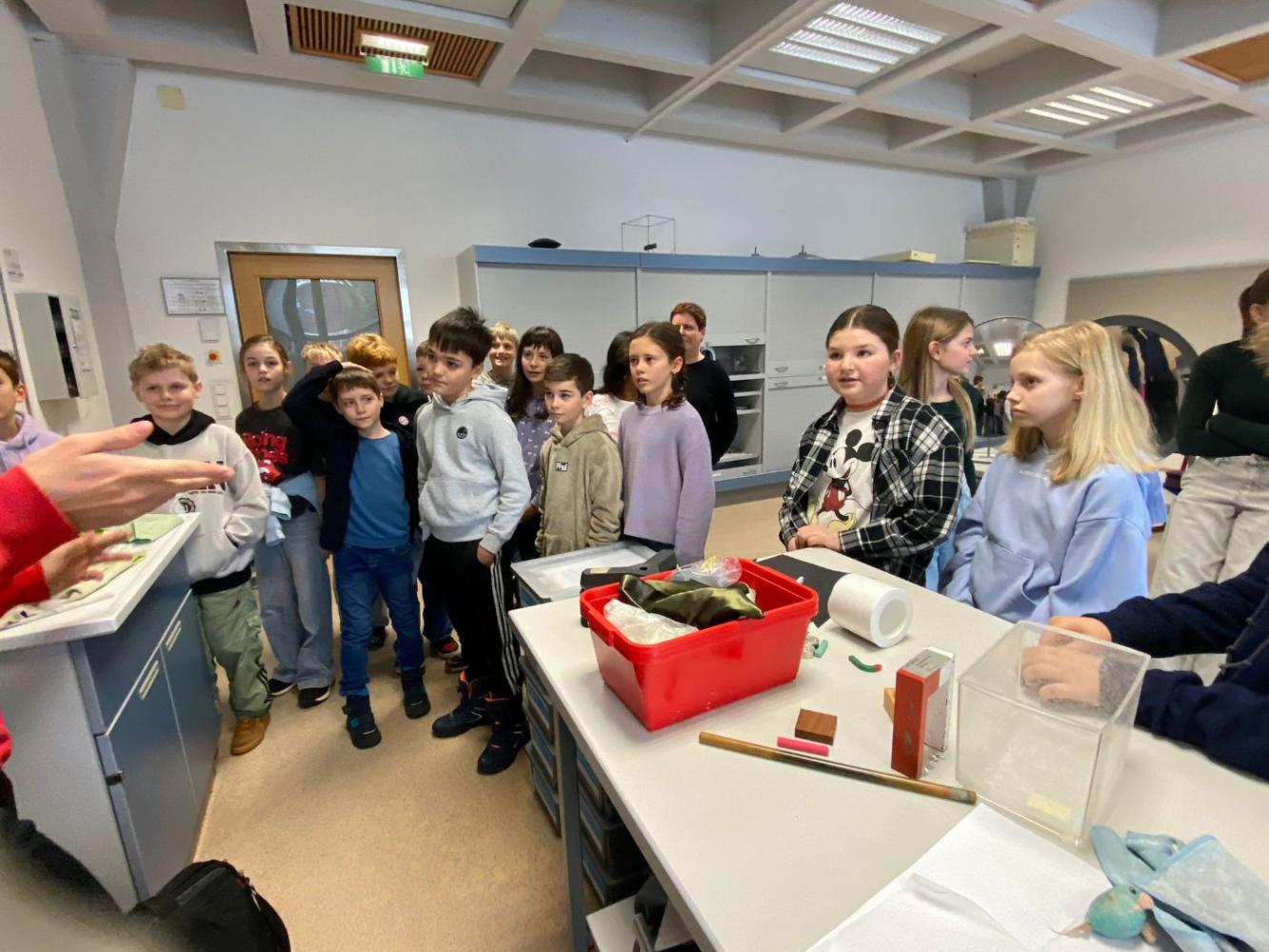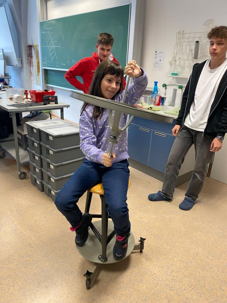 Danach ging es richtig los. Die Kinder durften verschiedene Unterrichtsstunden besuchen und einen Einblick in den Schulalltag des BRG Imst bekommen. Besonders beeindruckend waren die physikalischen, elektrisierenden Experimente.