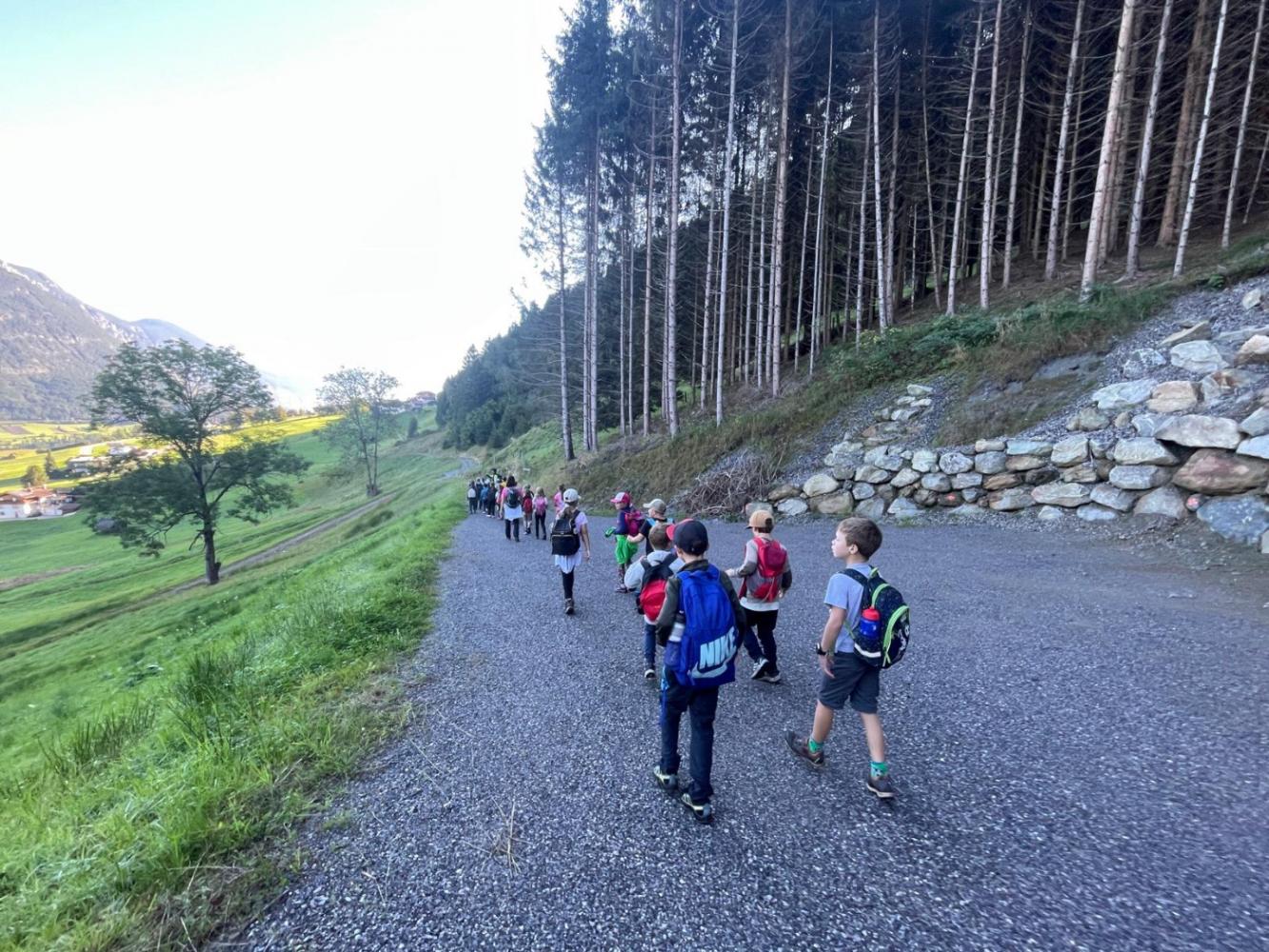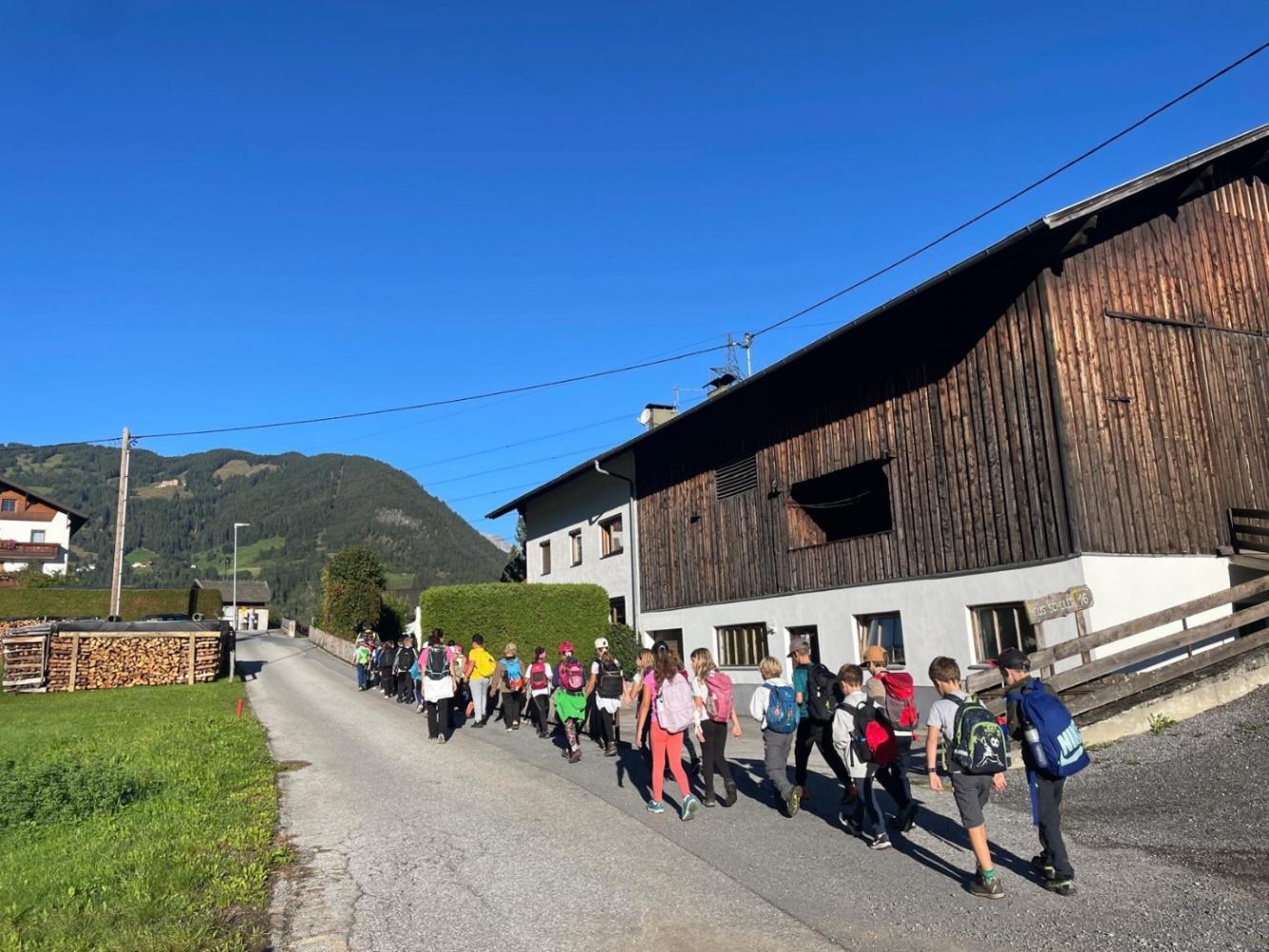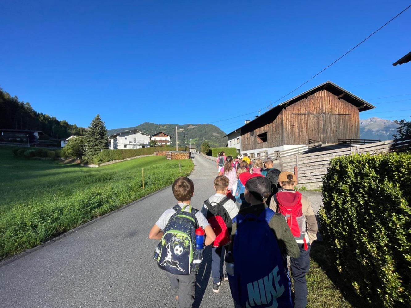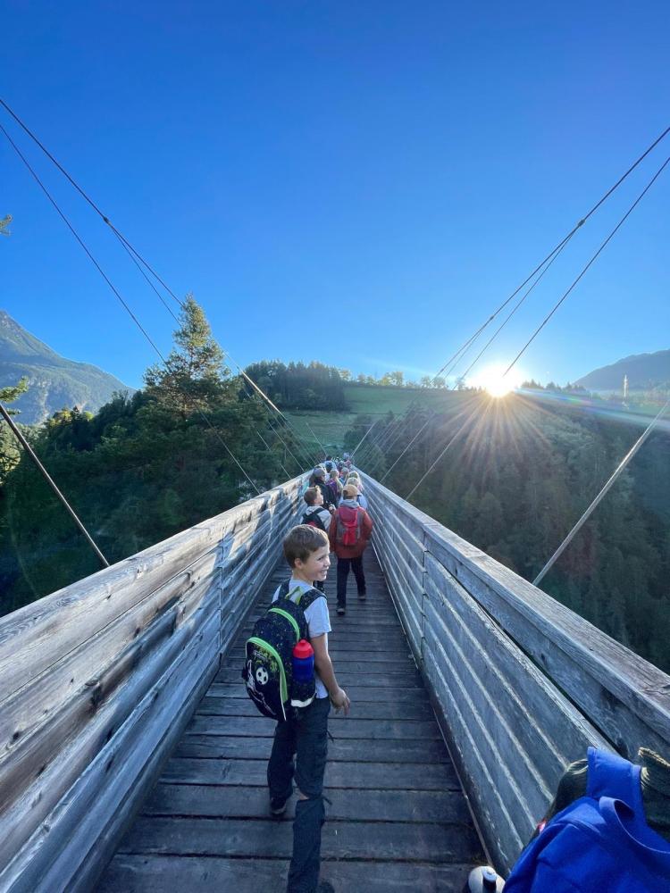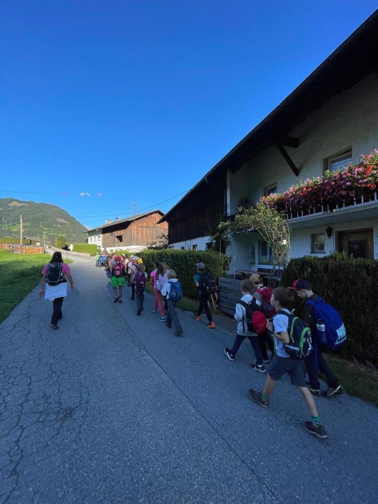 Wandertag der 3. Klassen von Martina Skarics 21. September 2025 Über die Benni Raich-Brücke spazierten wir durch Wald entlang der Wiesen und Wälder bis wir am Sportplatz ankamen. Dort stärkten wir uns mit einer leckeren Jause. Am Spielplatz und Sportplatz hatten wir im Anschluss noch genügend Zeit zum Spielen.